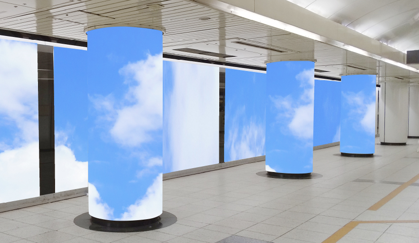 掲出はビッグウォール部(再剥離シート)+柱巻き(アドピラー)又はビッグウォール部(再剥離シート)+B1シートのどちらかの選択になります。